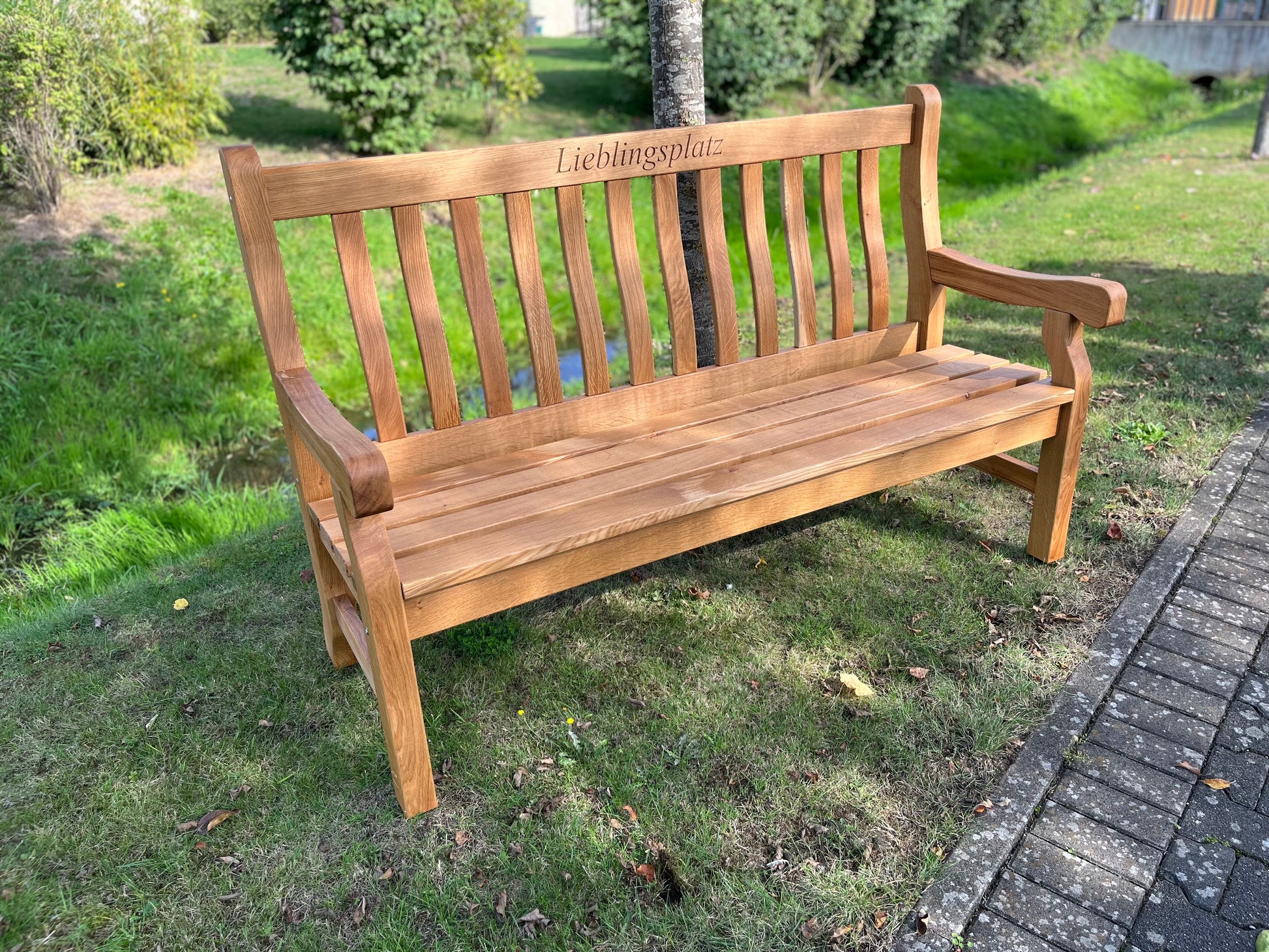 Auf Wunsch fertigen wir deine Bank mit einem individuellen Schriftzug – etwa Namen, Daten oder Widmungen – gegen Aufpreis. So wird jede Bank zu einem ganz persönlichen Lieblingsstück.